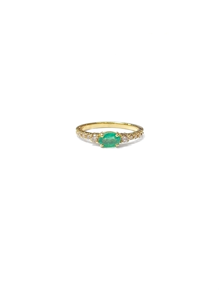 Anel em ouro amarelo 18k, com 0.38 quilates de Esmeralda e 0.23 quilates de Diamantes.
